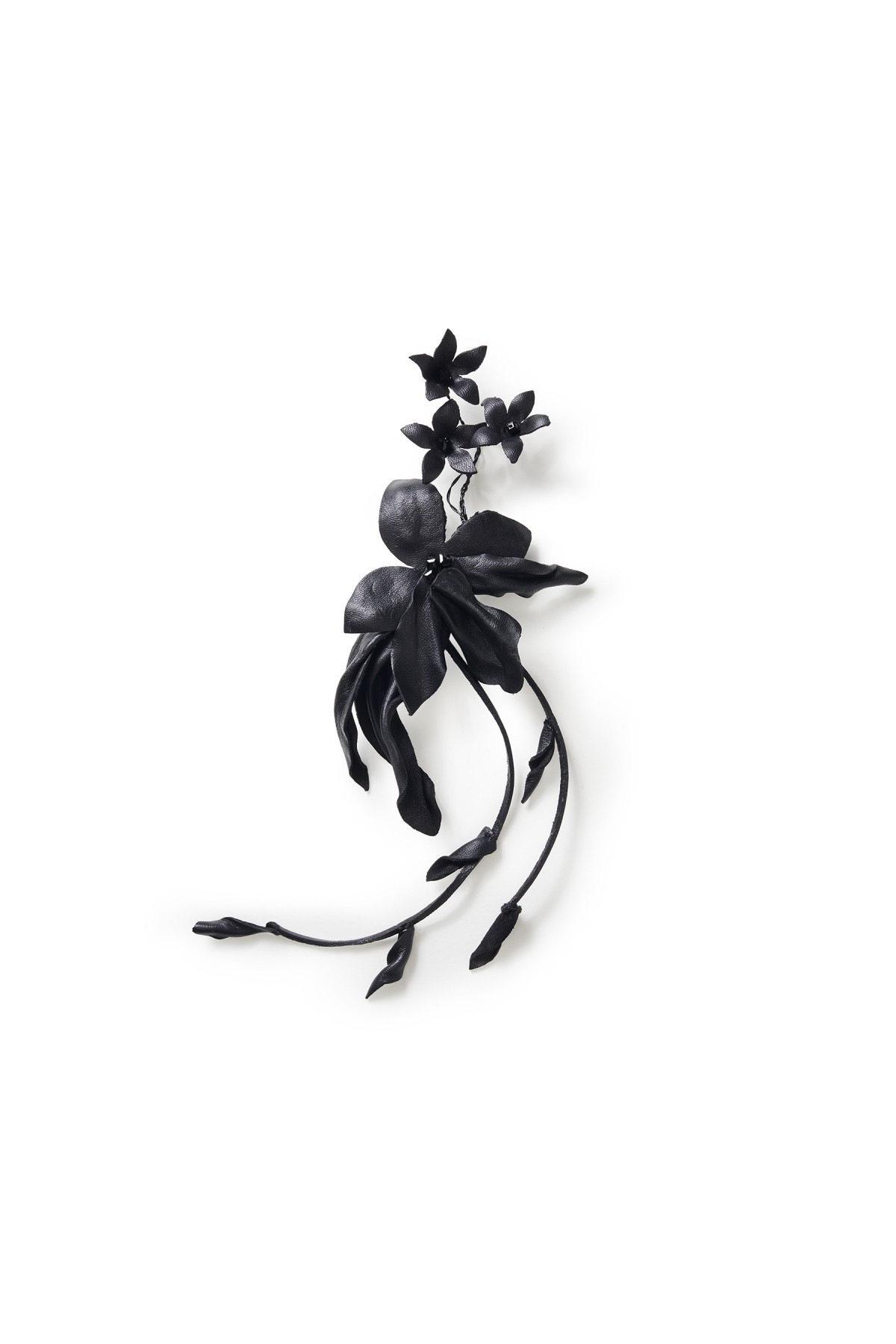 Gerçek deriden el işçiliğiyle hazırlanmış her yaprak, orkidenin altından zarifçe süzülen minik deri yapraklarla birleşir.