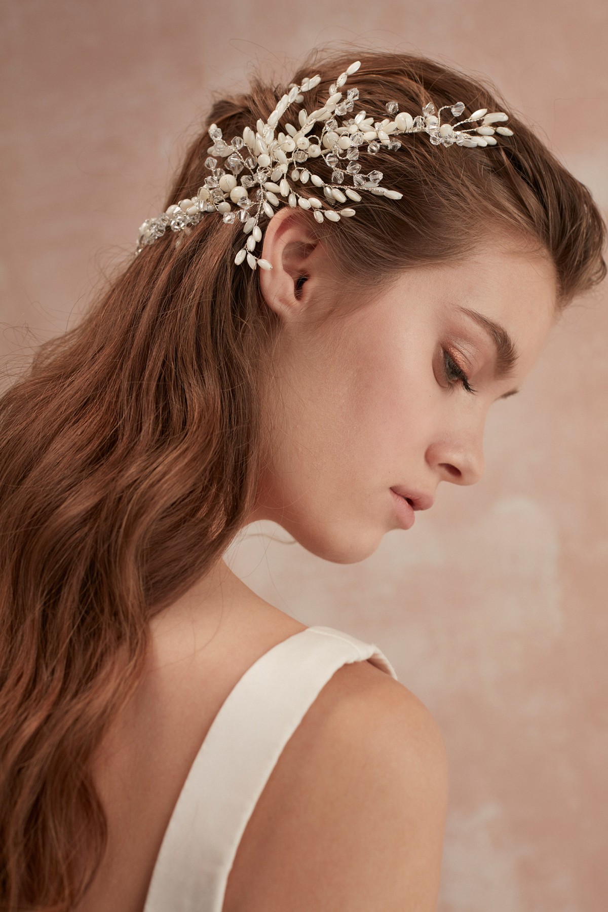 Bu gösterişli saç aksesuarı; el emeği ile doğal taşlar ve Swarovski kristallerden yapılmıştır.