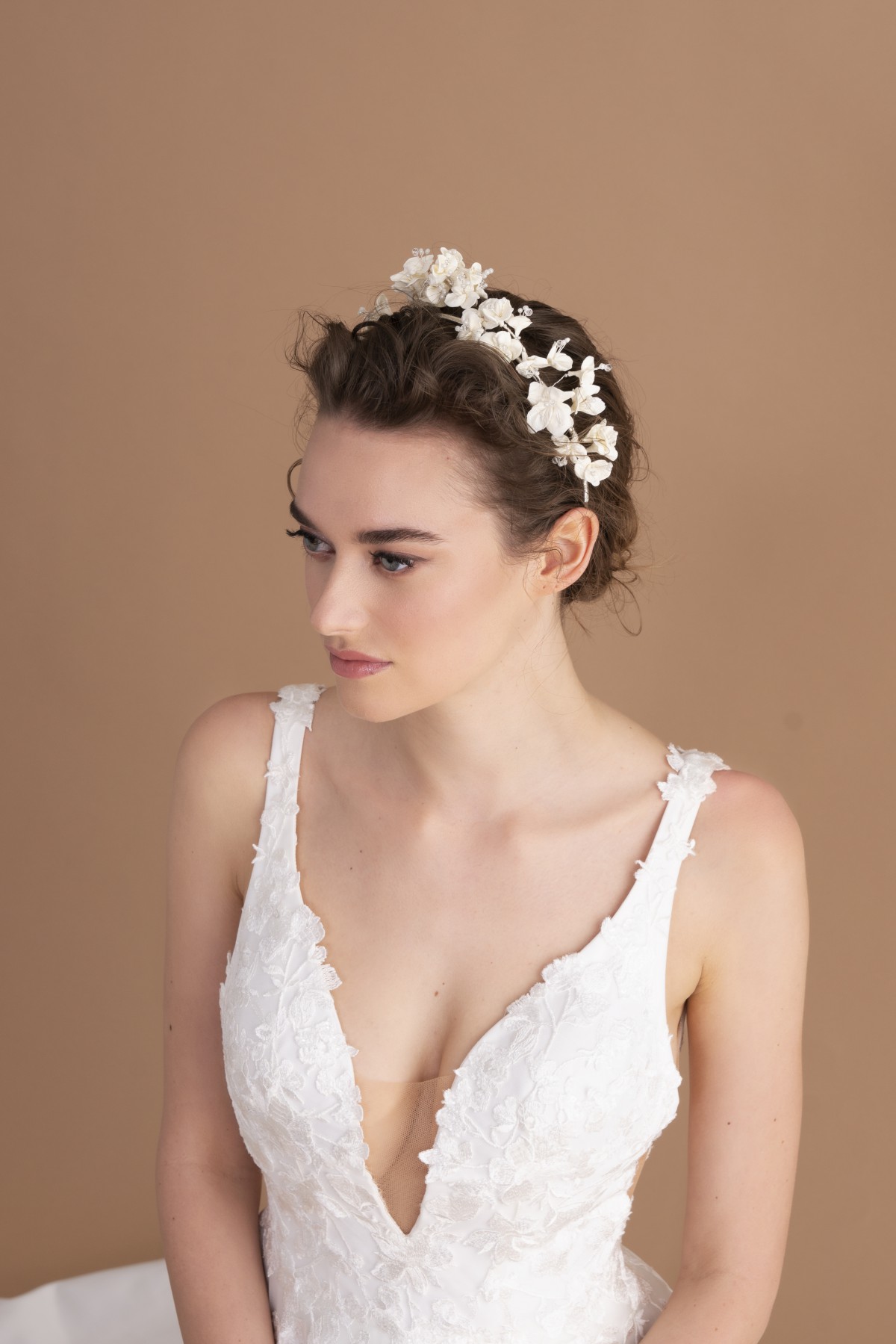 Porselen çiçeklerden oluşan el yapımı saç aksesuarı.